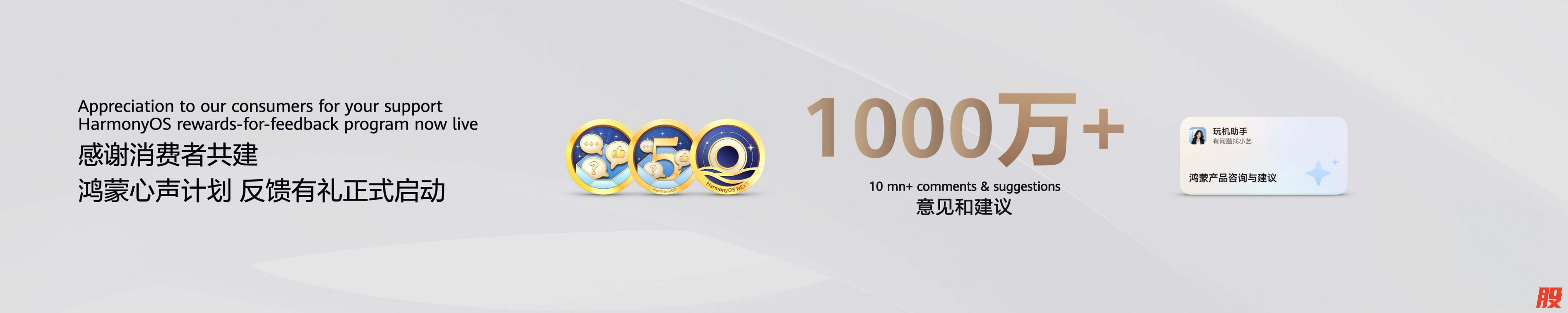 行百里者半九十,鸿蒙仍在发展的路上,鸿蒙高度重视用户体验与反馈。目前已累计收到超过1000万条用户建议, 96%以上实现快速闭环,鸿蒙正在变得越来越好。伴随“鸿蒙心声计划——反馈有礼活动”上线,所有使用搭载HarmonyOS 5设备的消费者,每反馈一个问题或需求,不仅可以获得定制勋章,还有机会可以获得鸿蒙手机、平板等奖品。